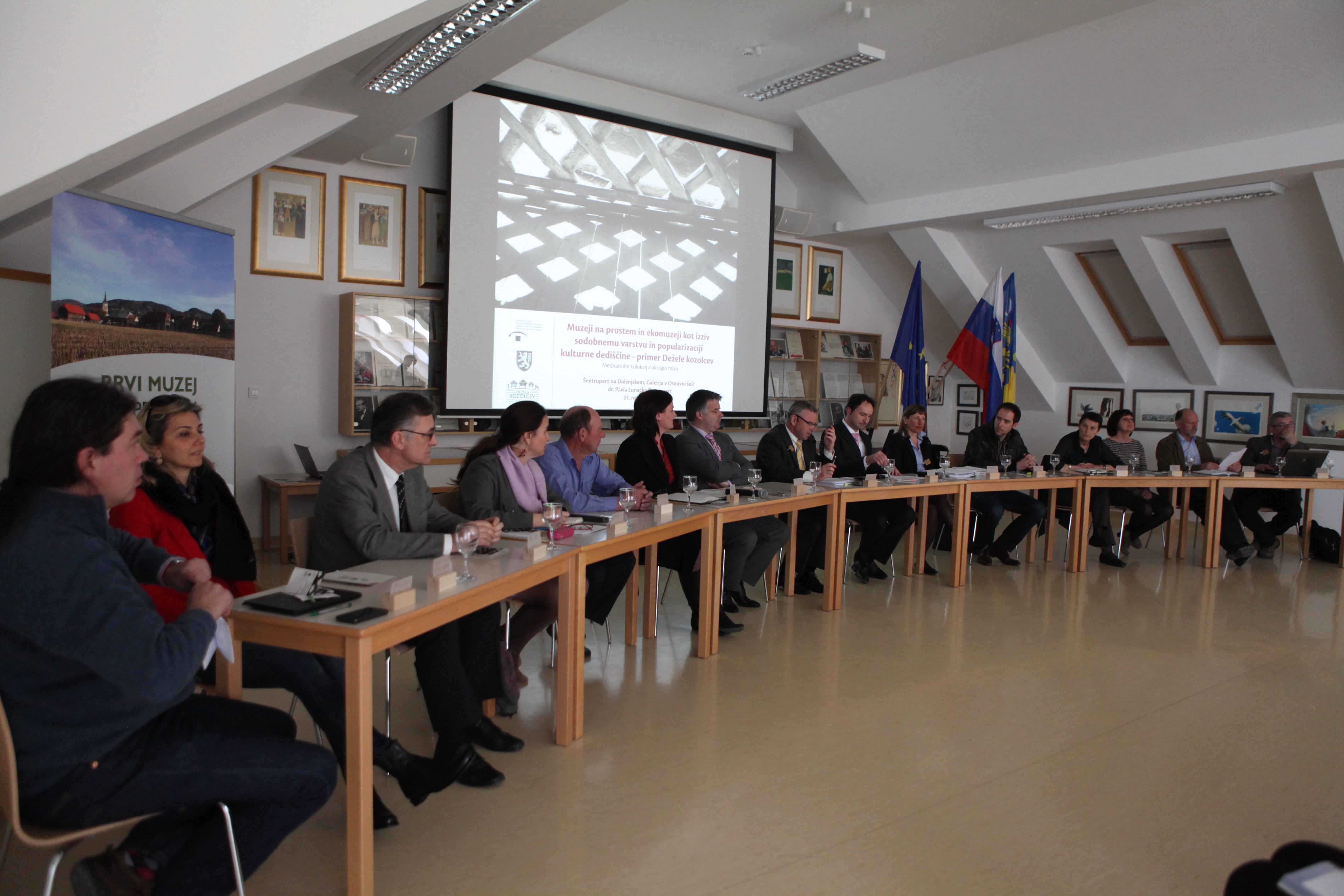 O nerešenih vprašanjih pri načrtovanju nadaljnjega razvoja Dežele kozolcev, trenutno veljavni zakonodaji in gospodarski akcijski plan, trendih muzejev na prostem in ekomuzejev v Evropi in po svetu pa so na okrogli mizi poleg že omenjenih strokovnjakov razpravljali tudi: Rupert Gole, župan Občine Šentrupert, Urša Repše, direktorica Dežele kozolcev Šentrupert, Vida Koporc Sedej iz Direktorata za kulturno dediščino iz Ministrstva za kulturo, Luka Ivanič, vodja Sektorja za urejanje prostora na lokalni ravni iz Ministrstva za infrastrukturo in prostor, Ivan Škarja kot predstavnik lokalnega prebivalstva, sicer izdelovalec unikatnih izdelkov iz lesa, Jože Šerbec, direktor Kobariškega muzeja, Eda Benčič Mohar kot vodja Delovne skupine etnologov konservatorjev iz Zavoda za varstvo kulturne dediščine Slovenije, mag. Polona Sketelj, muzejska svetovalka iz Slovenskega etnografskega muzeja, Igor Leban iz Centra za poklicno izobraževanje ter doc. dr. Verena Perko iz Gorenjskega muzeja in Filozofske fakultete. Moderatorji, ki so strokovno vodili in povezovali dogodek, dr. Vito Hazler, Ana Mlinar, prof., dr. Ljubo Lah ter mag. Dušan Štepec, so k besedi povabili prisotne udeležence in tako z izkušnjami iz prakse obogatili kolokvij.