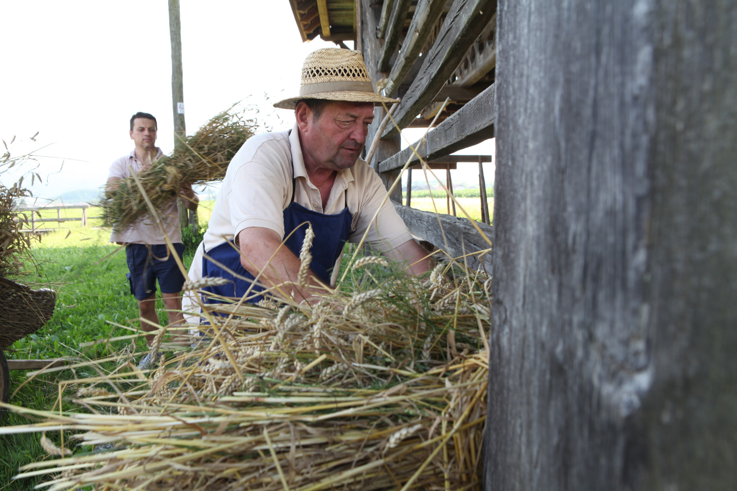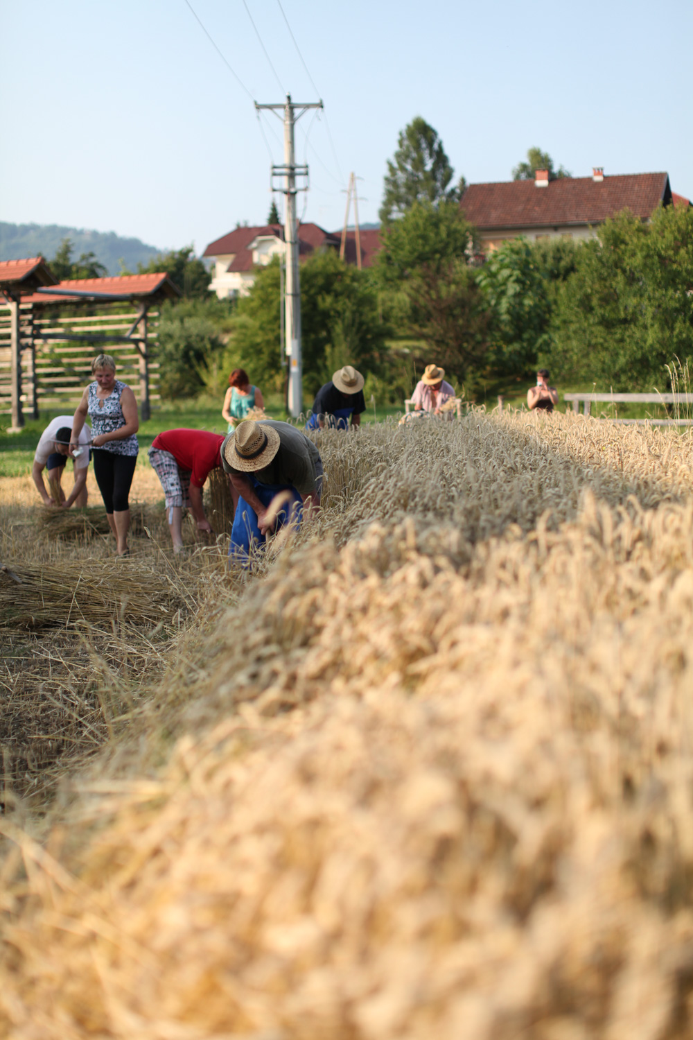V torek, 7. 7. 2015, smo v okviru sodelovanja pri projektu Dnevi evropske kulturne dediščine, ki ga izvaja OŠ dr. Pavla Lunačka Šentrupert, v Deželi kozolcev želi pšenico. Aktivnost je vodilo Etno družabno društvo Draga pri Šentrupertu, ki združuje posameznike z znanjem in voljo, da aktivnosti kot je žetev, mlačev, trenje lanu, tesarstvo in podobno, redno izvaja tako v Dragi kot tudi v Deželi kozolcev.